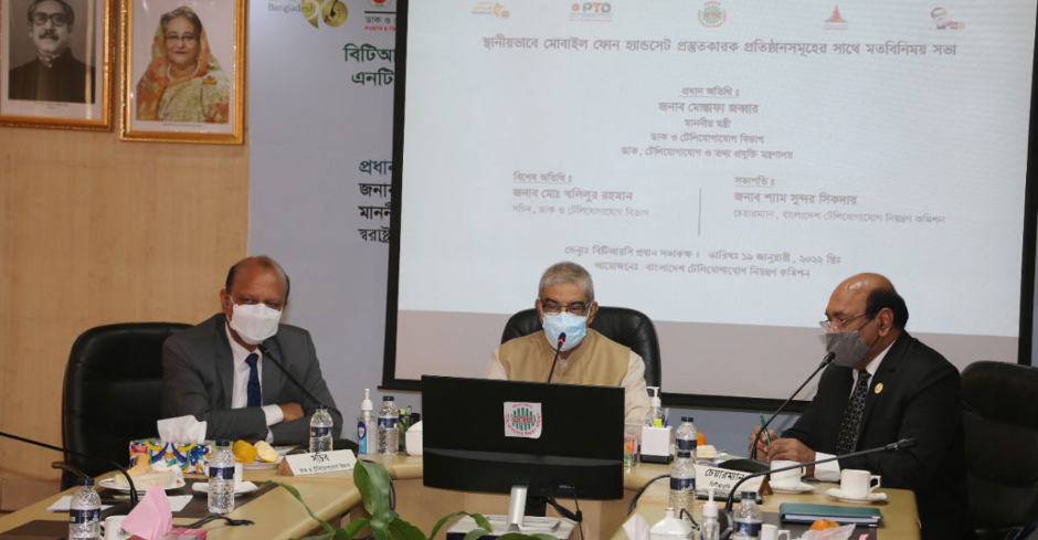 ডাক ও টেলিযোগাযোগ মন্ত্রী মোস্তাফা জব্বার বলেছেন, আমরা মোবাইল ফোন হ্যান্ডসেট উৎপাদক হয়েছি, এবার রফতানিকারক হতে হবে। মোবাইল হ‌্যান্ডসেট উৎপাদন শিল্পে বাংলাদেশের বিস্ময়কর অগ্রগতি অর্জিত হয়েছে।